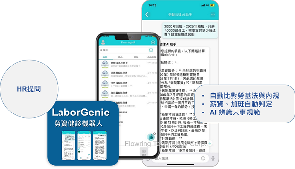 LaborGenie 專屬HR的勞資顧問, 結合制度比對、即時查詢與自動運算,將人事規章標準化。