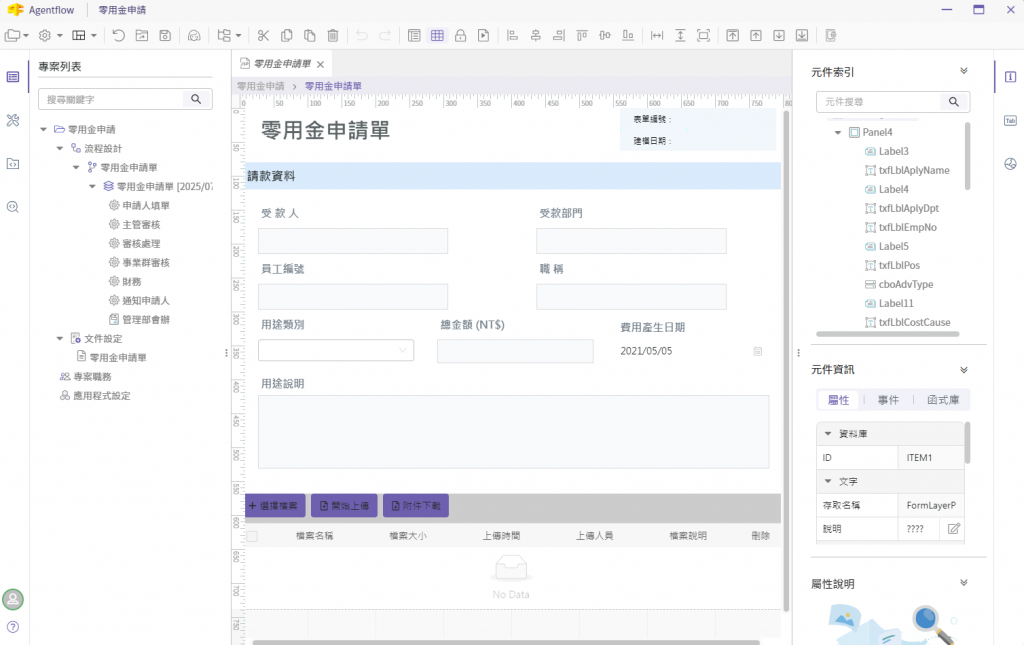 Agentflow 5 以全新介面與設計體驗,徹底翻新表單設計環境,讓流程開發更直覺、更快速、更智能。無論是 IT 人員還是流程管理者,都能在更短時間內完成表單設計、流程設定與系統啟用,實現真正的低門檻、高效率開發體驗。