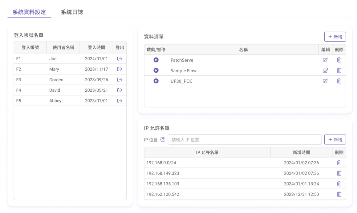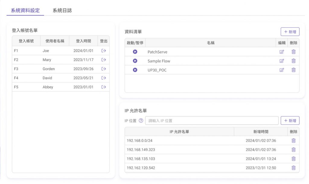 僅允許特定 IP 的用戶連線系統,杜絕外部未授權存取。適用於企業內部網路或特定合作夥伴,強化邊界防護。