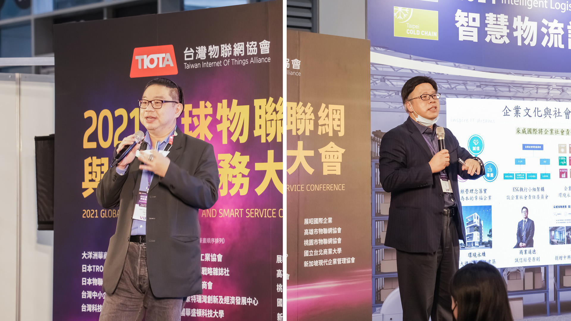 左圖:東陽能源 許孟紀董事長。 右圖:杰倫智能科技 林裕鑫技術長。 活動最後由趨勢座談壓軸,邀請到昱鑫智慧科技 龔輝雲董事長、台北商業大學 葉清江所長、政治大學 姜國輝教授、工研院 何明豐博士、台南物聯網協會 余政龍理事長、慧谷科技 朱騏總經理、台灣綠色旅遊協會 陶翼煌理事長、易晨智能 許永昌執行長、大寶科技 張韶芹董事長進行意見交流及案例分享,讓現場來賓滿載而歸。
