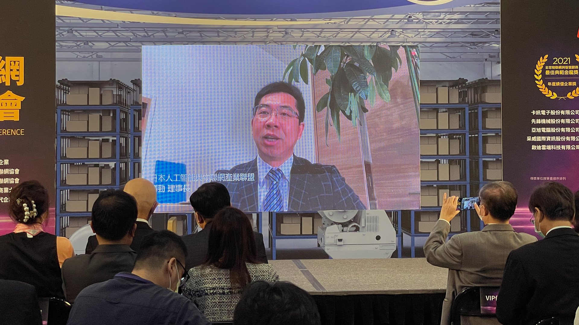 海外貴賓致賀影片。圖為日本人工智能與物聯網產業聯盟 劉勁理事長。 為感謝社會各界一路扶持台灣物聯網協會,大會在貴賓致詞之後,特別安排「榮譽顧問」及「專業顧問」授聘儀式,頒授與協會合力推廣物聯網應用的產學人士,包括:特力集團 何湯雄總裁、台灣土地開發 邱復生總裁、東吳大學 潘維大校長、台北商業大學 張瑞雄校長、會計研究發展基金會 王怡心董事長、台灣省諮議會 鄭永金諮議長、台北商業大學 葉清江系主任、政治大學 姜國輝教授。