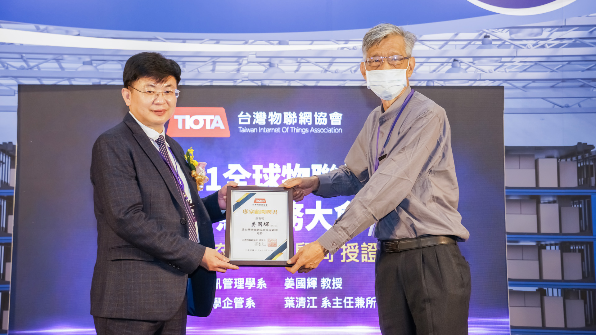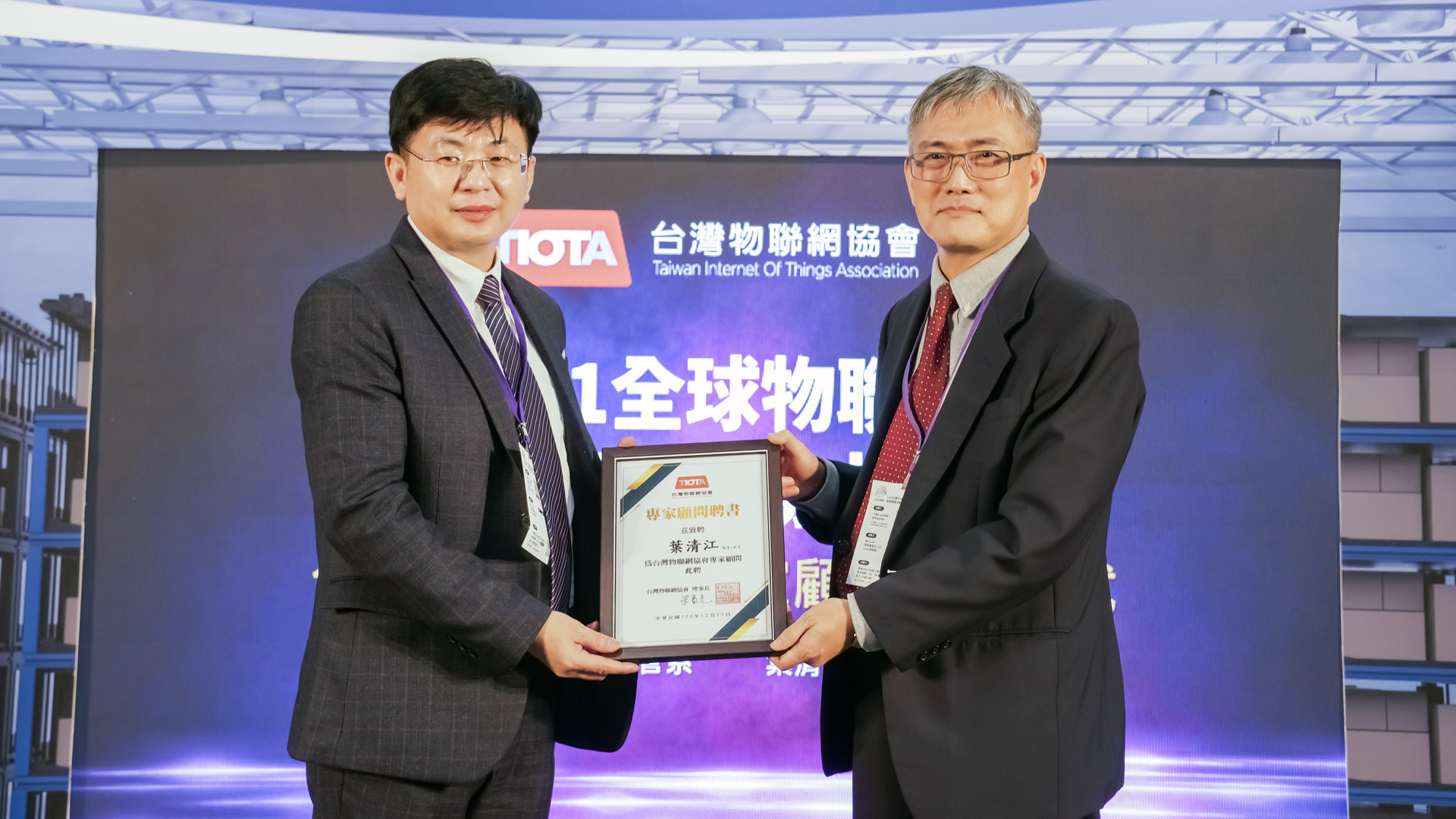 梁理事長授予台北商業大學 葉清江所長(右)台灣物聯網協會專家顧問聘書。