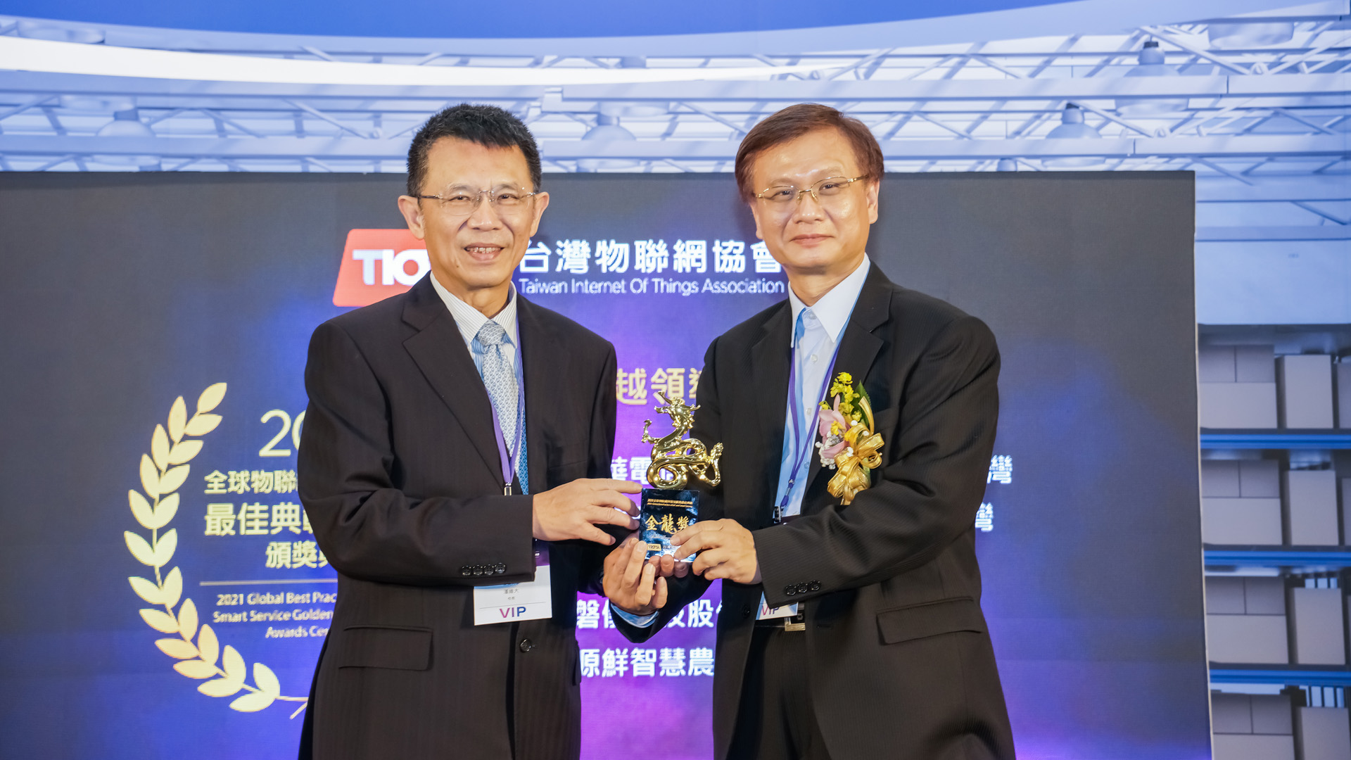 梁理事長授予政治大學 姜國輝教授(右)台灣物聯網協會專家顧問聘書。 緊接著進行「全球物聯網與智慧服務大會暨最佳典範-金龍獎」頒獎典禮。今年累計超過110家企業報名「年度績優企業、卓越領導典範、前瞻創新服務」三類獎項。由於參賽單位眾多,成就優異而難分軒輊,在經過多輪國際專家評審會議,最終榜單揭曉,由中華電信、遠傳電信、東陽能源科技、磐儀科技、源鮮智慧農場、卡訊電子、先鋒機械、采威國際…等23家知名企業獲得殊榮。